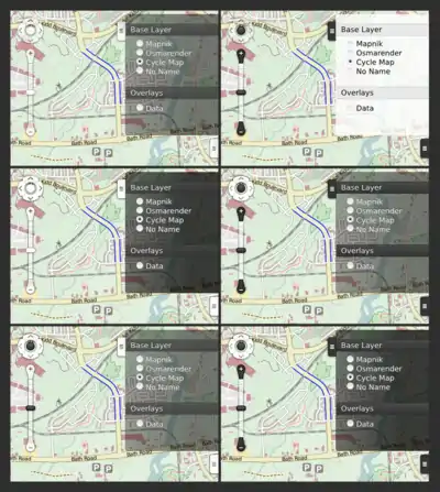 - The existing layer and zoom controls are implemented as part of OpenLayers, so I guess the suggestion of a freescrolling joystick control would be one to put to the OpenLayers developers (a separate but overlapping developmer community)