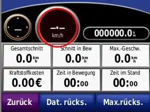 When viewing your map touch the Speed field to view the trip computer. Press for about 20 s. the marked field you can find in the screenshot.