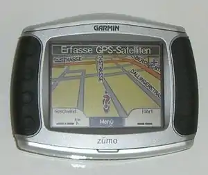 The Garmin zūmo series has been developed for use on motorcycles. They are battery operated and specially configured to be operated with the left hand. The housings are Ipx7 waterproof, fuel resistant, and vibration proof.
