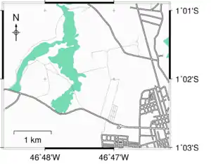 psxy -R-46.81/-46.77/-1.05/-1.015 -JM10c -K -m -W.7,black,- < roads02_example.gmt > output.eps psxy -R-46.81/-46.77/-1.05/-1.015 -JM10c -O -K -m -W2p/0/0/0 < roads01_example.gmt >> output.eps psxy -R-46.81/-46.77/-1.05/-1.015 -JM10c -O -K -m -W.7p/255/255/255 < roads01_example.gmt >> output.eps psbasemap -R-46.81/-46.77/-1.05/-1.015 -JM10c -L-46.803/-1.046/-1.046/1 \ -B1mf1mg1mwnES -T-46.807/-1.022/1 -O >> output.eps