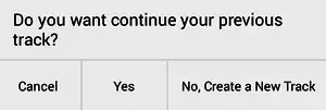 - If the warning appears “Do you want continue your previous track?”, click Yes to continue the track that exist previously, while click No, Create a New Track to start a new track.