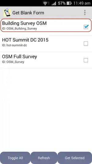 - After that, return to the Get Blank Form page, click Refresh and this application will connect to server. Then the name of survey form will appear in the page and check the box.