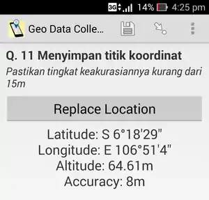 - Make sure the Geo Data Collect application has been installed and GPS has been activated in your smartphone. If you do not have this application yet, you can download in Play Store in your smartphone.