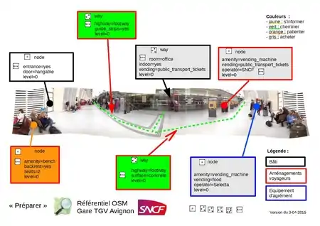 ![]() Types d'objets géographiques liés à l'action de "PRÉPARER" son voyage au sein d'une gare ferroviaire. |