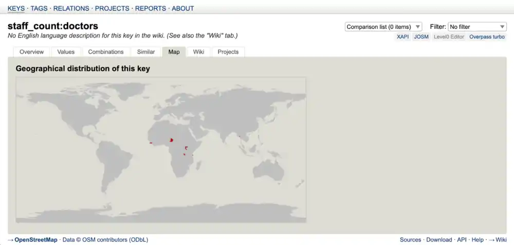 | 1 | staff_count:doctors | <number of doctors> | Indicates the number of doctors in a health facility | https://wiki.openstreetmap.org/wiki/Proposed_features/Tag:staff_count:doctors |