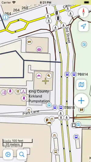 Press the GPS button to zoom to and track your current location. Press it again to turn off GPS.