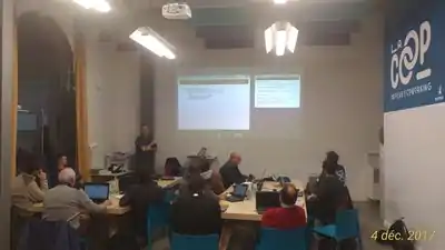 - troisième partie: ateliers pratiques en petits groupes, et incitation à contribuer dans les zones connues des nouveaux venus (quartier, lieux de travail, etc.)