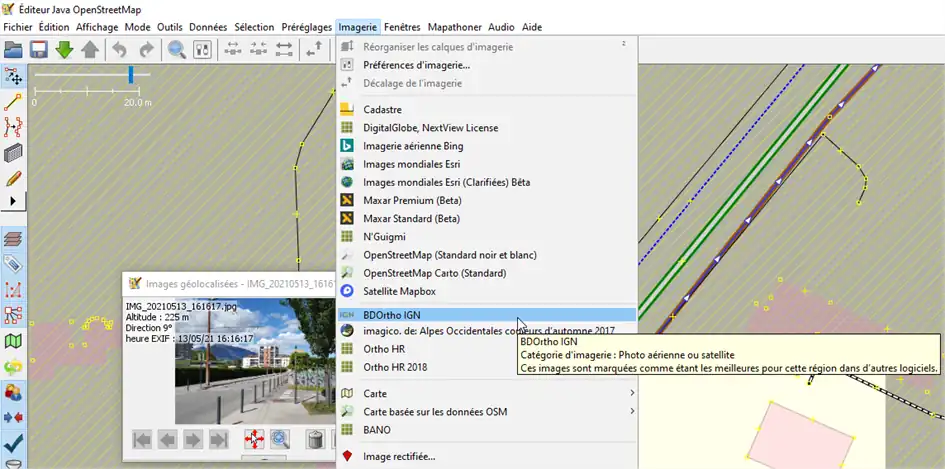 Ouvrir JOSM, et ouvrir la 1ère photo