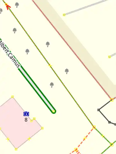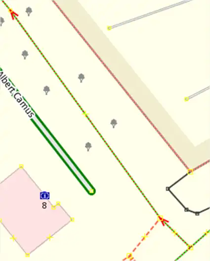 Exemple dans notre cas, avant on avait un chemin unique (marqué par les pointes de flèches) qui nous empêchait de prendre le chemin en pointillé orange. Après, ce chemin a été découpé en 2, on peut donc différencier la partie de notre itinéraire du reste du chemin.