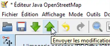 Pour envoyer les informations à la BDD d’OSM, il faut cliquer sur le bouton d’upload :