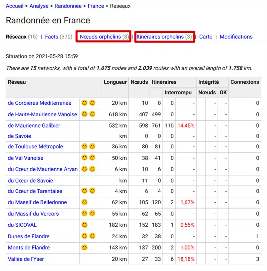 Il convient de porter attention aux nœuds et itinéraires orphelins.