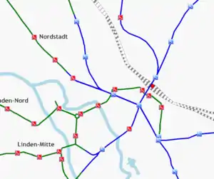 Gem. § 17 (4) Nds. SOG kann ein längerfristiges Aufenthaltsverbot für den Innenstadtbereich Hannovers durchgesetzt werden. Dieser Bereich ist durch die folgenden Relationen aufgenommen: