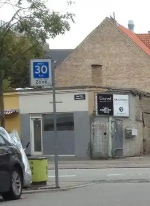 Eller det kan være et firkantet zoneskilt, med en hastighedsgrænse, der gælder for alle veje indenfor zonen. Tilføj zone:maxspeed=* (zone:maxspeed=DKXX, hvor XX er hastighedsgrænsen).