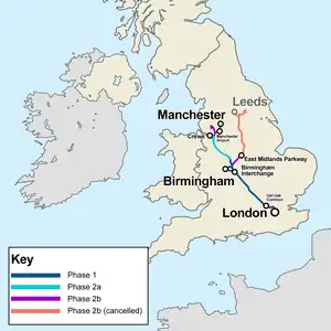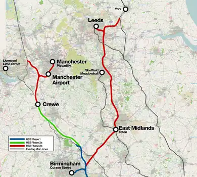 • Crewe (Phase 2a) - temporarily terminating in Crewe (proposed revamped Crewe Hub station project)