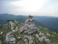 | man_made | cairn | An artificial pile of stones, often in a conical form. It is used by hikers, villagers, pilgrims, etc. as a mark to show the way, a border, or peak of mountain. | ![]() | |
