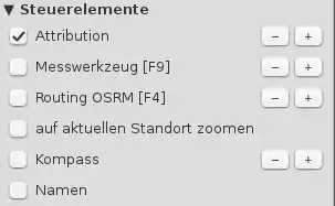 Das Attribution-Control zeigt Urheber und Quelleninformationen zu aktiven Kartenebenen an. Der Text wird am linken unteren Rand angezeigt. Standardmäßig ist dieses Werkzeug aktiviert.
