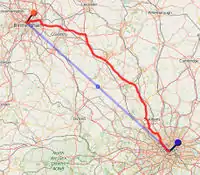 The measuring tool allows to determine the length of a path that may be created by clicking in the map. It can also be activated through clicking F9 key. The length is shown in the lower left part just above the attribution. The ESC key clears the current path. Clicking on the length info field pops up a small tutorial and also offers the option to download the path in several formats. (Currently only in German).