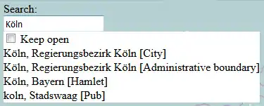 Enter the location you're searching for and hit the 'Enter' key. You see a result list where you can choose from with the mouse. For convenience there's the possibility to keep the result list open (select 'Keep open').
