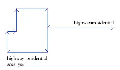 Ne felejtsd el, hogy a területek nem önálló alapelemek, és némelyik zárt vonalról (például a landuse=*) feltételezzük, hogy terület, de másokról, mint a highway=footway, nem. Utóbbiak terület helyett lineáris térképelemként vannak kezelve, kivéve, ha area=yes címkét is kaptak.