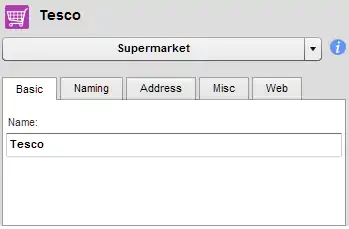 Amíg az objektum ki van választva, vizsgáld meg az oldalsó tulajdonság szerkesztőt, ahol megadhatod a bolt nevét (Name) és további jellemzőket. Nézd végig a mezőket az egyes füleken és adj meg annyi információt amennyit csak tudsz.
