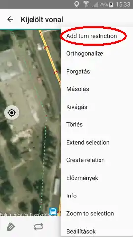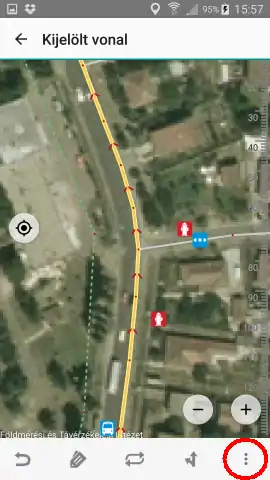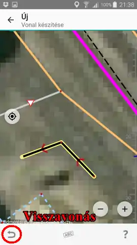 Ha más helyre bökünk a térképen, egy vonalat hozzunk létre, amelyet minden bökéssel egy újabb törésponttal bővíthetünk. Az eszköztáron látható visszavonás (undo) gombbal mindig visszaléphetünk egy lépést. Hosszan nyomva a gombot a változtatások listáját kapjuk meg, amelyben több lépést is visszaléphetünk, vagy újra kiadhatunk egy visszavont műveletet. Ez a gomb természetesen egyéb műveletek közben is használható, nem csak rajzolás közben.