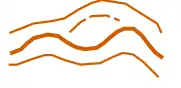 watercourse way ISOM#304 Crossable watercourse; ISOM#305 Small crossable watercourse; ISOM#306 Minor/seasonal water channel ISSOM#305.1 Passable body of water; ISSOM#306 Passable small watercourse; ISSOM#307 Minor watercourse ISMTBOM#305 Crossable watercourse; ISMTBOM#306 Crossable small watercourse; ISMTBOM#307 Minorwater channel Crossable watercourses (width < 5 m). The width of watercourses over 5 m wide should be shown to scale (area: natural=water ). size=large (> 2 m) / small (< 2m) / minor (intermittent), width=[meter] waterway=stream + width=* > 2 m resp. width=* < 2 m or waterway=ditch + optional: intermittent=yes or waterway=drain + optional intermittent=yes