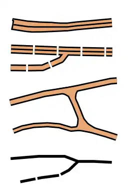 boundary way 414 Distinct cultivation boundary, 416 Distinct vegetation boundary 414 Distinct cultivation boundary, 416 Distinct vegetation boundary 414, 416 not used in ISMTBOM Different type of boundaries between vegetation areas, when not not shown with other symbols (fence, wall, path, etc.) type=distinct_cultivation/ distinct_vegetation boundary=field or boundary=parcel or boundary=forest_compartment + border_type=vegetation