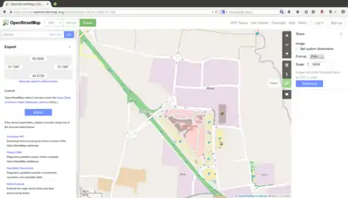 Le barre laterali accessibili sulla pagina principale di OpenStreetMap.org, permettono di compiere semplici esportazioni di una particolare area della mappa in forma di immagini o dati grezzi.