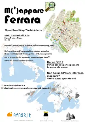 Il Mapping Party di Ferrara è stato organizzato in concomitanza del Città Territorio Festival (Programma > Altre iniziative).