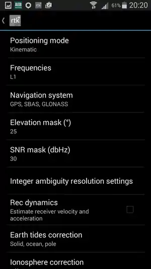 - Software RTKGPS+: è basato sul software http://www.rtklib.com/ . La App non è per nulla banale da configurare anche per la scarsa documentazione disponibile in rete. Questa pagina wiki vuole essere un piccolo ausilio per la sua configurazione.