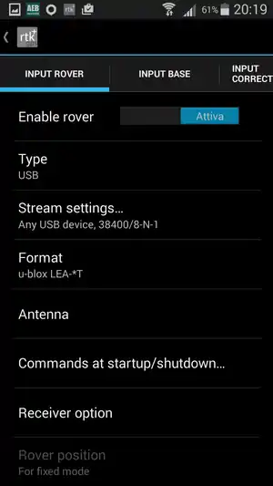 - Software per correzione RTK (Real Time Kinematic): per ottenere quindi un sistema funzionante portatile si può utilizzare il software per Android RTKGPS+