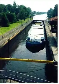 | Tratto di un corso d'acqua, chiuso da cancelli, che forma una chiusa. |