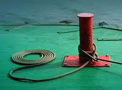 - (usualmente al plurale) The equipment used to secure a vessel.
