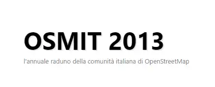 OSMit 2013 è la quinta edizione della conferenza annuale di Openstreetmap in Italia. Quest'anno OSMit verrà realizzato in collaborazione con Wikimedia Italia, il chapter italiano di Wikimedia Foundation, la fondazione non profit che mantiene Wikipedia.