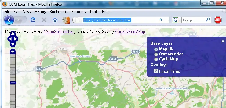 Open the local_tiles.htm in your browser and check the result. You can change the base layer to check the different tiles.