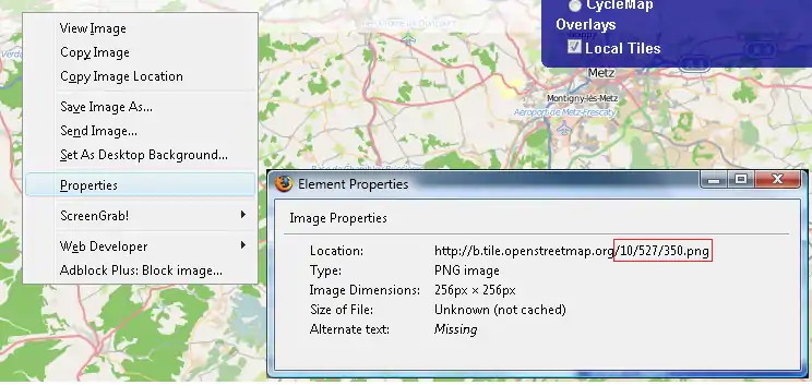 Se manca qualche tile, cliccare con il pulsante destro del mouse nel browser ed aprire "visualizza informazioni immagine" da dove è possibile vedere quali tiles mancano.