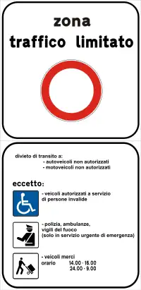 II.322a | Zona a traffico limitato | Restricted vehicluar access zone | ||