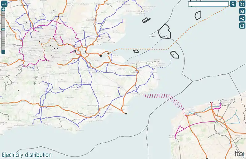 Linee elettriche in base al voltaggio power lines mappa da ITO Map