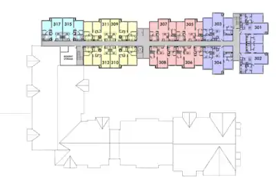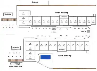 The shopping center generally consists of one or more buildings. Stores may face the internal hallway or the outside. The object of interest is a unit. Other important objects are bathrooms, stairs/escalators/elevators, open areas in the floor (we called these open obstructions) and other rooms.