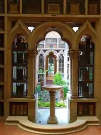 This is a very obscure example. This is a place where peoples ashes are stored. Kind of an indoor graveyard. The building is a twisted maze of rooms, with floor to ceiling cubby holes for urns.