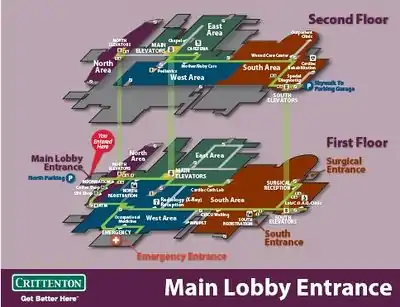 Hospitals are very large. The different use case for a hospital will require a very different map. The use case for patient navigation should be very simple just showing the sections of the hospital. Hospitals actually spend a lot of money on signage to help patients find their way. A map for hospital employees, such as to track assets, should be very detailed, shown at the room level.