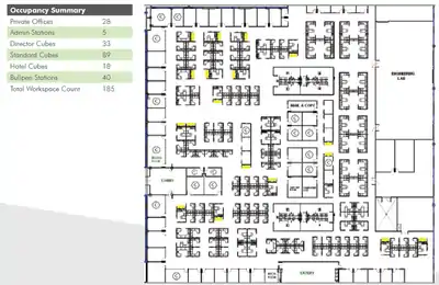 A business campus will be similar to the academic campus but with less variety. A simliarly high level of detail is required. Areas of interest are offices, cubes, conference rooms.