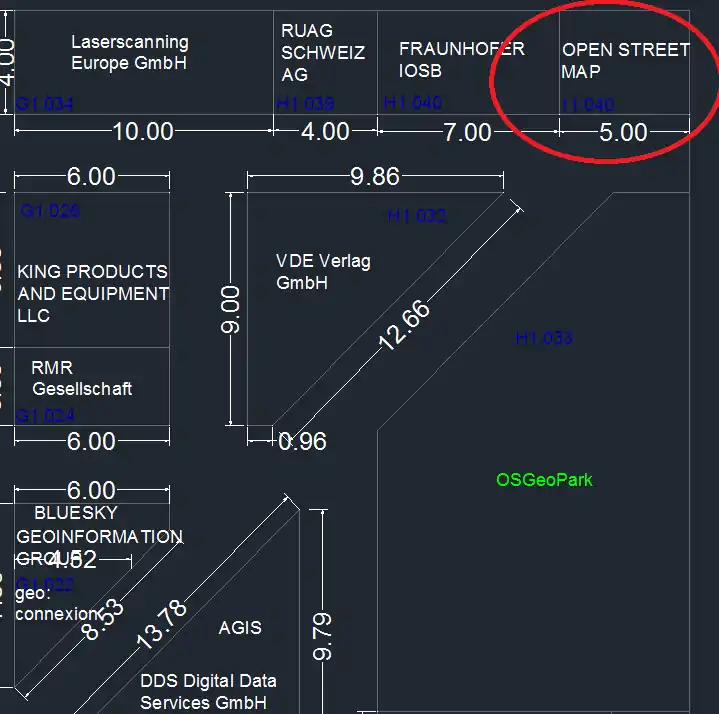 OpenStreetMap ist dieses Jahr nicht im OS-Geopark sondern mit einem eigenen Stand vertreten. Auf dem OS-Geopark der dieses Jahr vermutlich OpenSource Parkheißen wird, wird es aber wieder einen Vortragsbereich geben auf dem auch der ein oder andere OSM-lastige Vortrag zu hören sein wird.