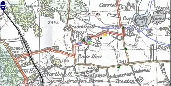 以下の画像(Markinch にある小規模な住宅地)にはたくさんの GPS の軌跡が含まれており、様々な誤差を含んでいます。