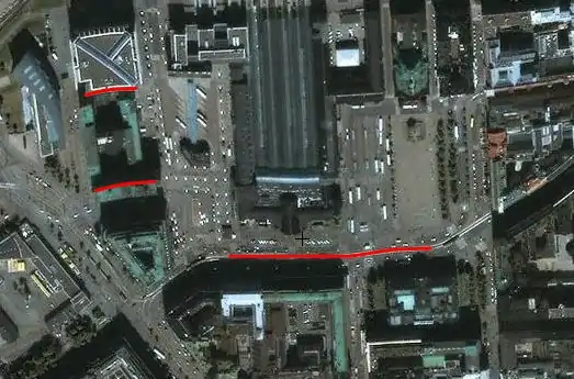 あなたは、同じ方向に接続されていない物理的に分離されたレーンが誤って交差しないように、適度な距離で分離されたままにするために、同じカーブにノードを追加する必要があるかもしれません。そのため直線区間と実際の道路との間の最大オフセットは、4-5メートル(典型的な道路でたいてい十分な道幅の半分ほど)以上になったり、都市部では2-3メートル(横断歩道、信号機、バス停、リサイクルBOX、郵便ポストといった設備を歩道上に正しく置ける程度)以上になるのは避けるべきです。バスやトラックが通れる道路では、カーブ区間の間の最大隅角偏位はおおよそ20度(丸い円は約16個のノードで描け、通りの典型的な角は、直線に接続する小さな区間用に3-4個のノードが必要)であるべきです。もちろんあなたは道路や通りに加えて建物や障害物(樹木や駐車区画を含む)を横切るのは避けるべきです。大きなラウンドアバウトやとても長いカーブでは、カーブ上の区間が約30メートルを超えない程度にノードを追加できます。このように細かく描かれていれば、典型的なGPSナビゲーションシステムは(ジャンクション近くや障害物で区切られた平行する道路での誤った表示や、あなたが野原や私有地の中央にいると考えているかどうかを表示しなかったりといったことを避けつつ)あなたがどちらのウェイ上にいるかを知ることができます。農山村地方や軌跡だけの森林内では、カーブは推測するだけで、やや正確さに欠けるかもしれません(GPSの精度は森林内では低く、航空画像は解釈することが難しいのです:あなたは公式な土地測量や土地台帳を、それがオープンデータとして利用可能であり平均を取るのに十分なGPSを持ち合わせていない場合は、利用する必要があるかもしれません)。