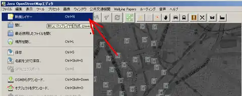 - JOSMメニュー⇒[ファイル]-[新規レイヤー Ctl+N]を選択して、「データレイヤー」を作成してください。