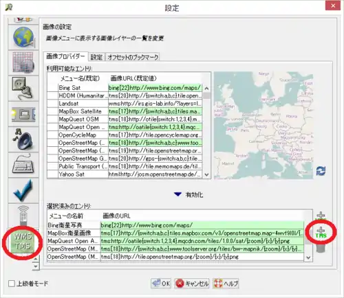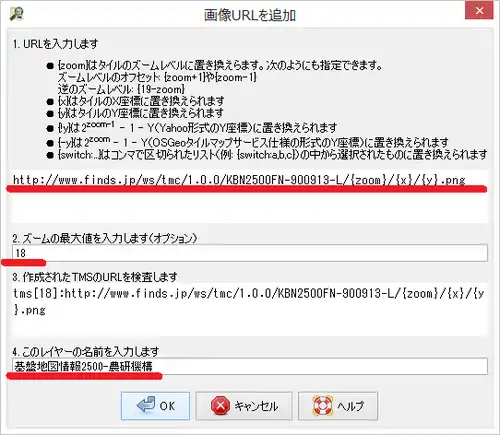 基盤地図情報 25000、および 2500 TMS設定方法