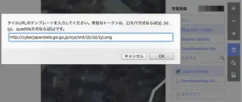 なお、各URLで示されている {z} の部分を、 {zoom}という文字列に変更する必要があります。