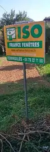 木の幹に支えられた広告看板(自然の木の幹に似たもので、この種の機器は「広告ツリー」と呼ばれています)。 |