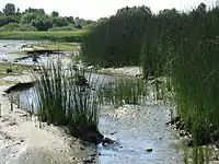 葦原。特定の背の高い草本植物(葦やガマ)が支配的な浸水区域。 | ![]() |